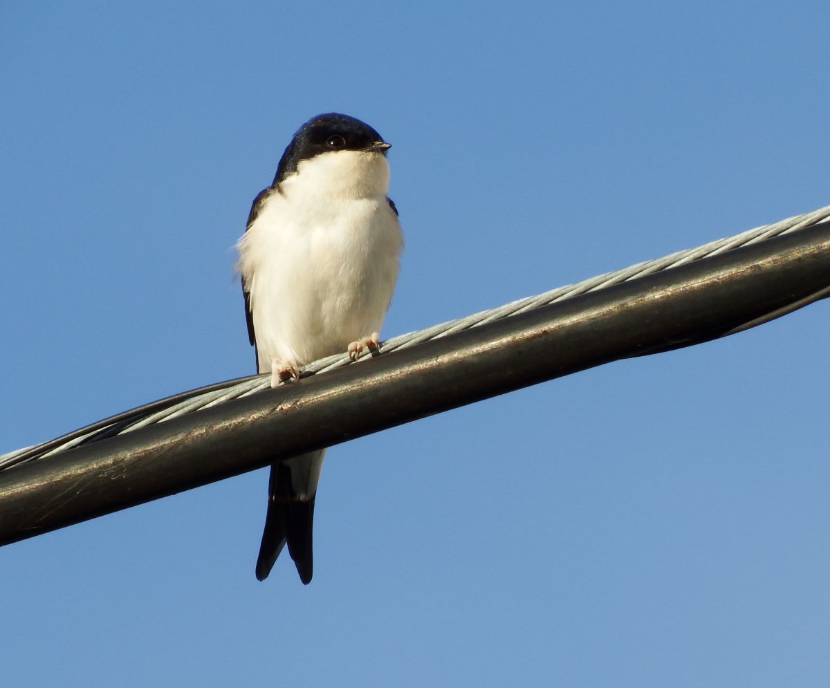 - Ya en territorio urbano tenemos el avión común, muy parecido a la golondrina, pero de tamaño inferior. Su cola también tiene forma de horquilla, pero de menor tamaño que la de sus parientes y lo distinguirás porque tiene una franja blanca justo antes de la cola que los técnicos llaman obispillo. El avión cría en todos los núcleos habitados de Tierra Bobal y has visto muchas veces sus nidos. Suelen estar en loa aleros de tejados y tienen una forma semiesférica.