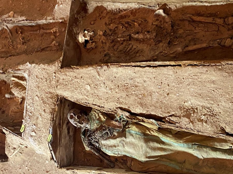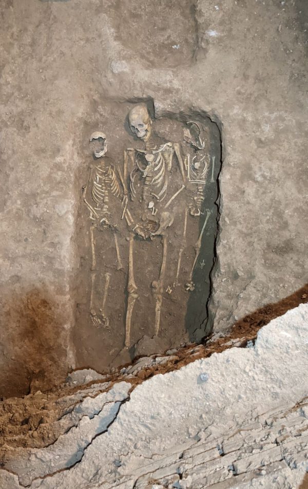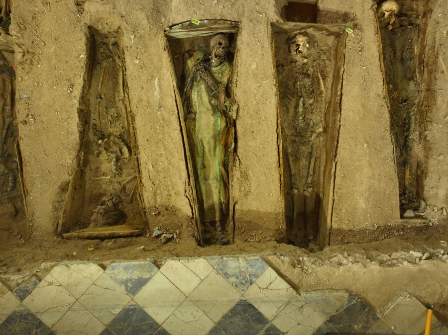 El equipo de arqueología también estudió el antiguo cementerio asociado al templo. Bajo el pavimento aparecieron enterramientos datados entre los siglos XIII y XIV, algunos de los cuales aún conservaban vestiduras religiosas, así como lápidas reutilizadas en el siglo XIX. Estos hallazgos confirmaron que la iglesia había sido espacio sagrado durante siglos, hasta que los enterramientos se trasladaron extramuros en los inicios del siglo XIX.