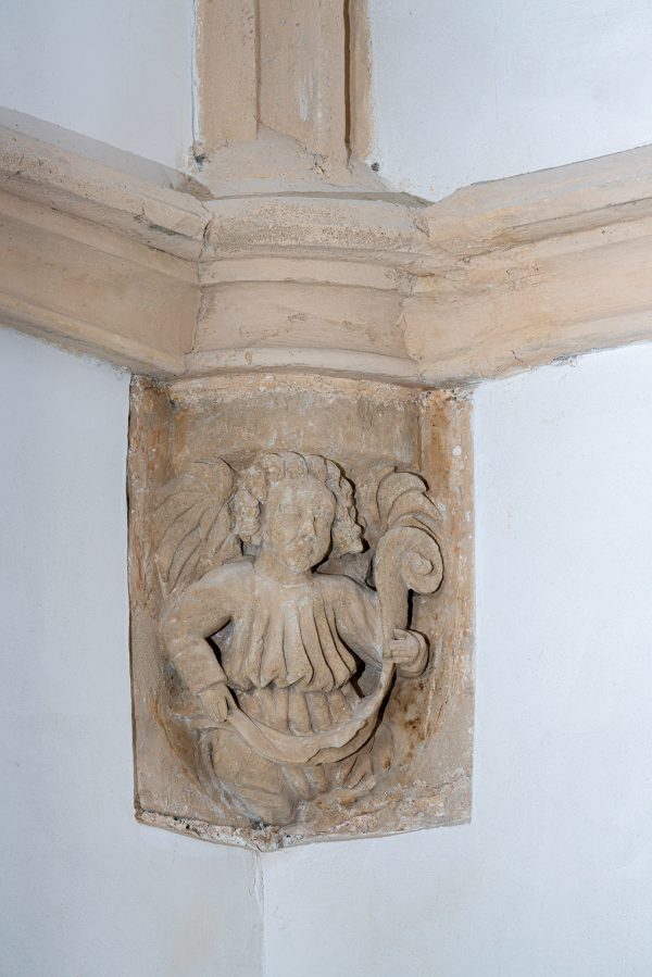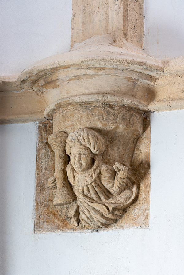 Uno de los hallazgos más emotivos para el equipo fue recobrar la pintura mural que ocupó el altar mayor y que está fechada en 1669. Oculta durante siglos tras el retablo barroco, muestra dos ángeles con incensarios flanqueando una custodia. La capa pictórica estaba deteriorada y a punto de desprenderse, pero fue fijada, limpiada y reintegrada, recuperando su viveza original. Ahora es el punto al que se dirigen todas las miradas.